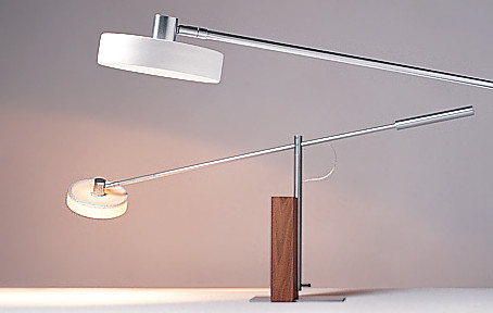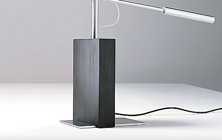 Gaspare 台灯的长颈可以方便调节角度,光强度也可以调节。木基座采用橡木或胡桃木。