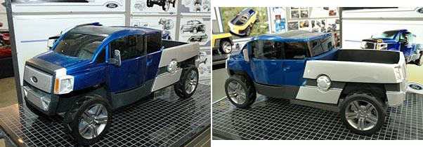 Lou Gasevski方案的核心是美式足球理念。这种美式足球设计理念在美国911前就出现了。他用两个词概括了自己的设计观念:“高雅、暴力”。在Ranger车上,这就指一个简单、低小的车身,车顶前后面都略带弧行。受到足球理念影响最大的地方就是足球状的顶部设计,像一个大笼子,这种设计是现代卡车最流行的,有很窄的车内空间,车顶四周用挡风玻璃和一些厚实的柱子围住,给人一种力量和保护的感觉。汽车前端排热栅和引擎罩的设计也继承了“笼子”的思想,栅做得结实、水平,保险杆却做得很细小。亮蓝色的前灯在整个银色的车身中显示出了一点不同的味道。车的尾部外壳同样是弧行的,和圆形的车顶保持了一个格调。车的尾灯做得光彩耀人。如果你想自己开车环绕洛杉矶或者巴格达的话,这辆车绝对是一个不错的选择。