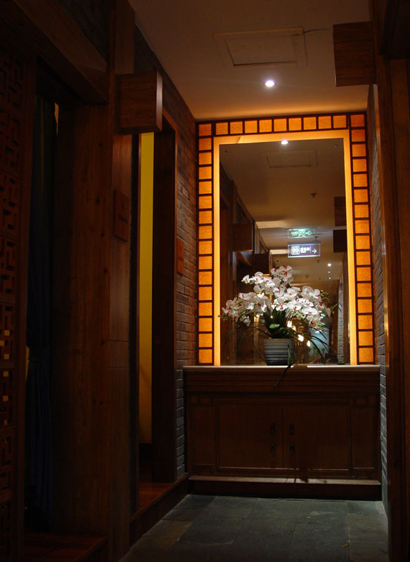 在室内设计过程中大量采用借景、对景的手法使这4500平米的空间以大化小,以小化精。大胆地将中国古典园林以及中国古典建筑的处理手法与较为现代的设计观念相结合,以传达中国古典园林般的空间美学理念,致力于创造一个新的中国特色的文化空间。