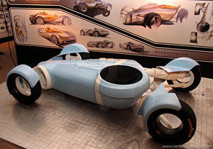 这件作品是一辆运动概念车,车内、车外的设计都采用了很多先进技术。车子将车内的设计都暴露在外,很容易看清先进技术的应用,这些先进的功能因此成为了车子美观上一个重要的部分。驾驶员的座位是在这个不对称汽车的中间,所用的功能操作都设置在驾驶座周围,给驾驶员一个全新刺激的驾车体验。
