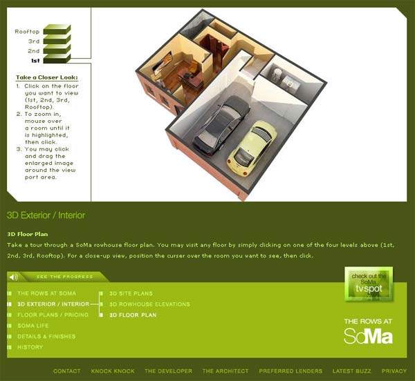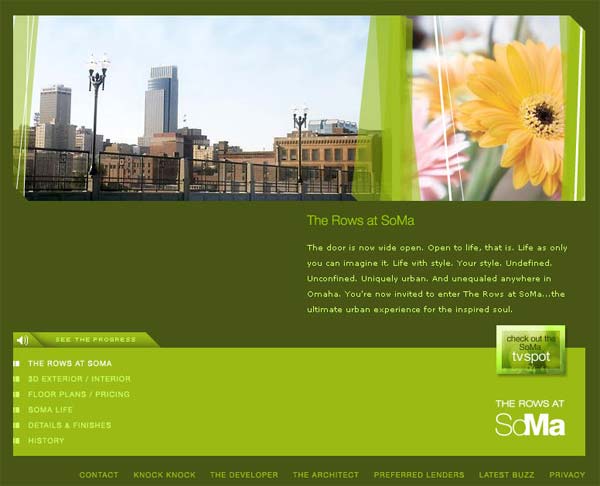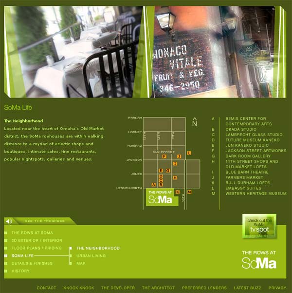 这个网站介绍了奥马哈人的第一套排房,它们座落在城市南部的一个古老的集市地区。这是一个可以代替房屋模型的虚拟网站,而且是开发商销售的有力工具。客户可以从中得到足够的信息,然后再与房地产经纪人见面。