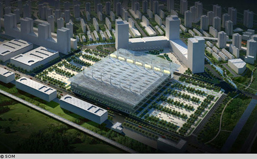 SOM建筑设计事务所是美国最大的建筑工程事务所之一,SOM设计的北京新方向国际展会中心, Beijing New Vision Int'l Conference and Exhibition Center。