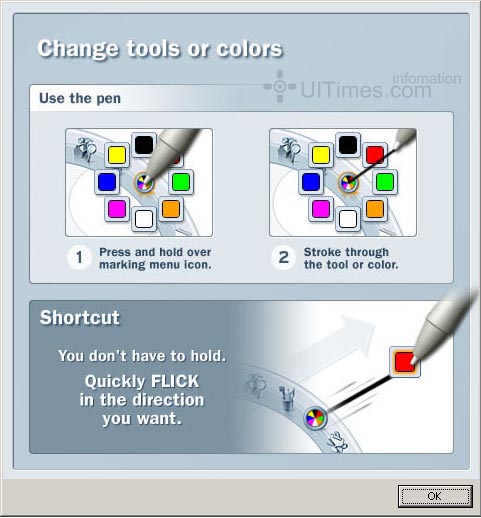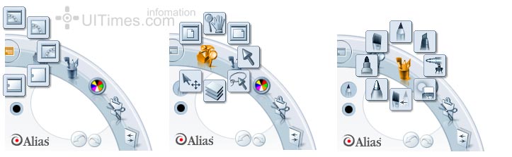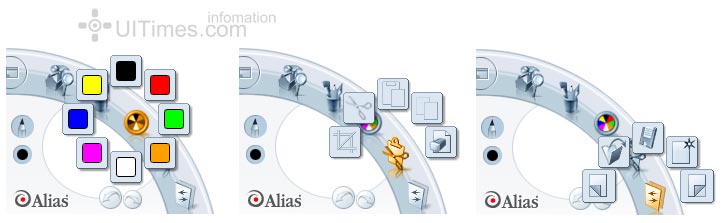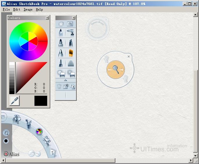 它的放缩和移动,变化画笔大小等操作非常有特点,在一个类似罗盘的一个操作面板上直接拖放