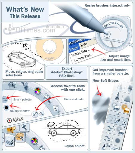 Alias几天前正式发布的Alias SketchBook Pro 2是一款极其优秀的绘画软件。最新的Pro 2版本有如下重要改进:将分层的PSD文件保存以便在Photoshop中调用;在层堆栈中插入图像;交互式地改变笔刷大小;更容易理解更接近真实的笔刷属性;创造个性化的笔刷。