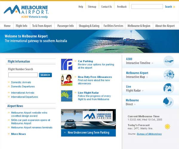 这个有趣而且易操作的网站提供了大量关于墨尔本国际机场的信息。
