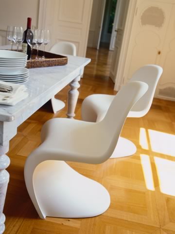 Verner Panton于1967年设计的Panton Chair,简洁利落的线条,一体成型、造型完美,让人 眼睛为之一亮,至今仍深受人们的青睐,常可看到它的身影被运用在不同的空间。