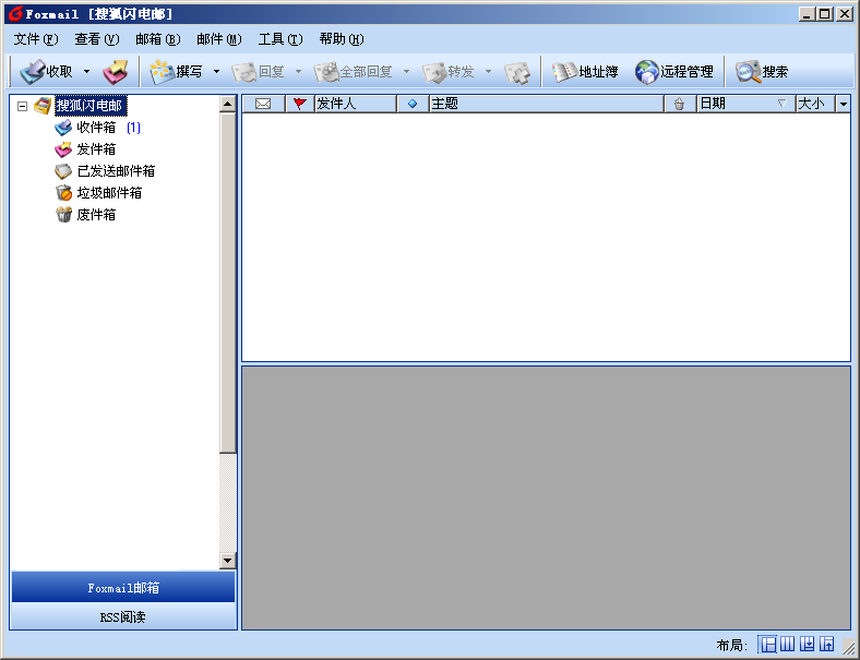 新版本支持RSS新闻阅读并内置了一些主要的门户站点,在阅读RSS模式下面,工具栏更改成为RSS专用的功能,对于无法使用的功能作了灰化处理, 而且在切换邮件和RSS的时候tab(自己发现-_-#)