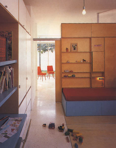 设计特点:建筑师Bassat新装修了自己80平米的房子,这座房屋在建造和功能上有直接的联系。房间物品的摆放有种精度感,正是这种精度感使人联想到“框架住宅”,因为无论是书、光盘还是餐具都连续并排地摆放着。另外一个因素是家庭各成员在忙自己事情的时候,彼此都在视线以内。还有一个独特的方面就是建筑结构产生的内外线条的质感美。