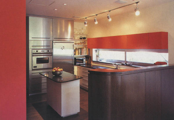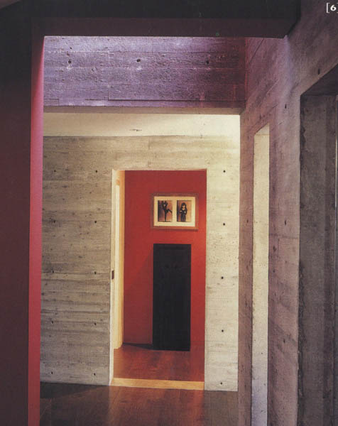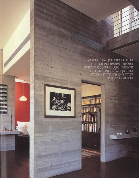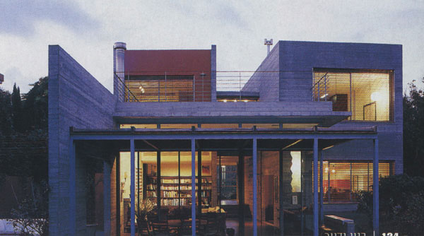 设计特点:女建筑师Dafna Arnon尤爱红色,对于她来说,红色不仅是一种颜色,还是时尚的元素。她相信建筑的特质来源于空间、光线、室内外的联系以及细部设计,一些细小的元素如家具、艺术品结合混凝土、色彩、木材、光线、风景渗透到住宅的各个角落并随季节的变化而变幻。她认为建筑不仅在于它的外观,还在于建筑本身。住宅立面既独特又壮观,尽管裸露的混凝土给人一种疏远的感觉,她还是设法在自己的住宅里创造温馨、私密的氛围。