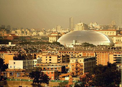 北京:国家大剧院,世界最大的穹顶建筑,总建筑面积约16.5万平方米,造价超过20亿元人民币。
