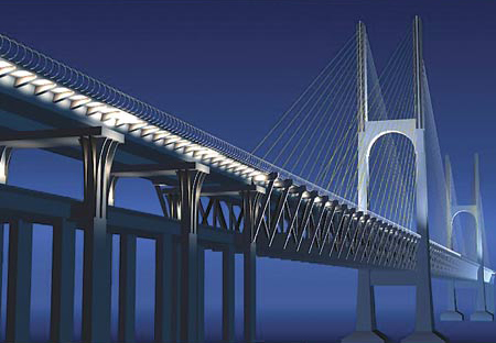 武汉_天兴洲长江大桥:世界最大公铁两用桥,下层为可并列行使四列火车的铁道,总投资约110.6亿元人民币。