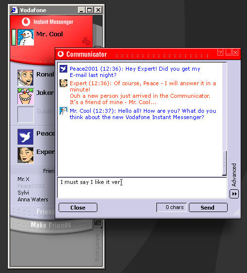 电信运营商vodafone公司,推出的即时通讯工具vodafone instant messenger