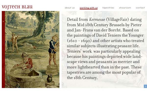 这是一个经营欧洲现代和古典地毯的美国网站,交易的对象是设计师,建筑师和地毯收藏者。