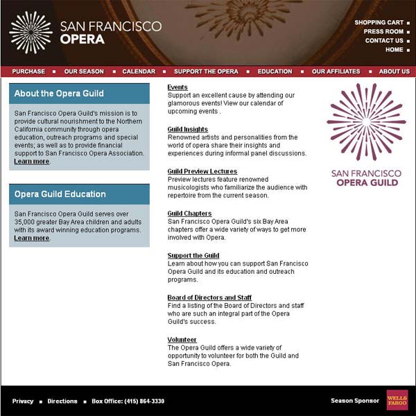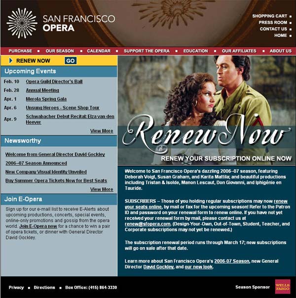 这个网站旨在吸引喜爱歌剧的人们,同时尝试着吸引国际上较年轻(三十岁或以上)精通科技的观众群。通过吸引全世界狂热者的注意拓展营销,同时向当地的核心观众群扩大服务面将会带来不错的结果。