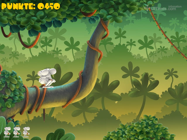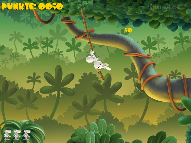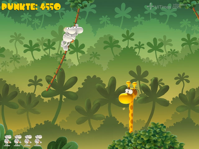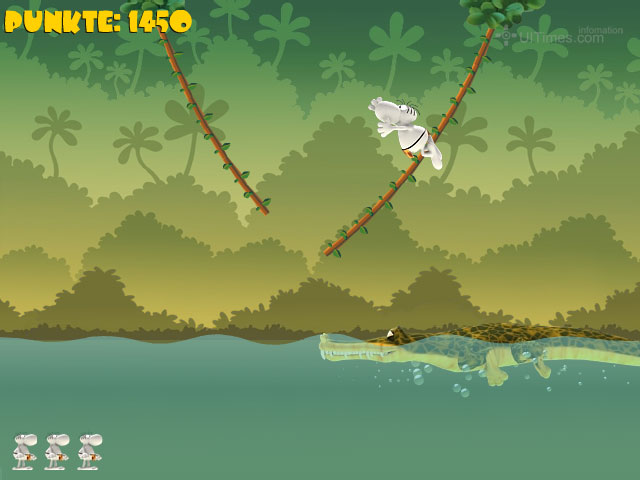 Phenomedia发行的精彩小游戏,画面背景采用Q感十足的三维场景,角色造型应该来自是Mordillo(莫迪洛)的漫画,游戏的创意很简单---我们的主角要从森林的一端靠树藤荡到另一端,找到自己的心爱之人还要抱着她荡回去,有点像人猿泰山里面的情节。中途会用长颈鹿伸出脖子来“问候”你,鳄鱼在下面“期待”你,一不留神大象的鼻子也被你当做树藤了……