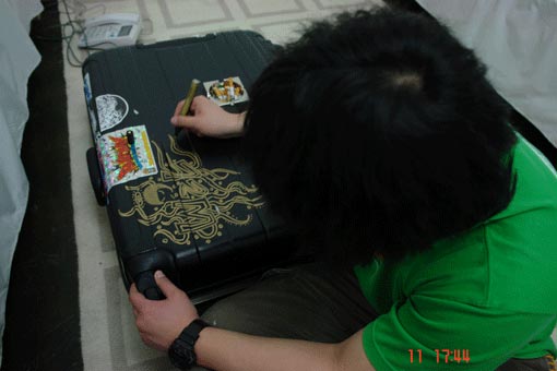 北京设计师WZL为日本艺术家Washio手绘行李箱留念