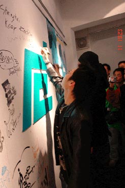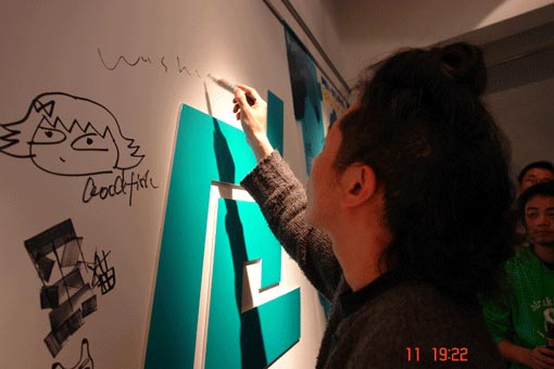 da>space负责人Jukai为现场贵宾在公仔上签名留念