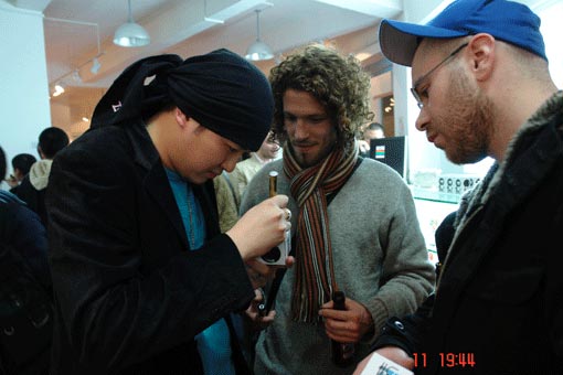 (左起)da>space负责人之一Jukai、日本艺术家Washio、北京设计师WZL