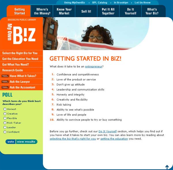 布鲁克林公共图书馆(BPL)为帮助年轻人及新移民创业而设的介绍网站。