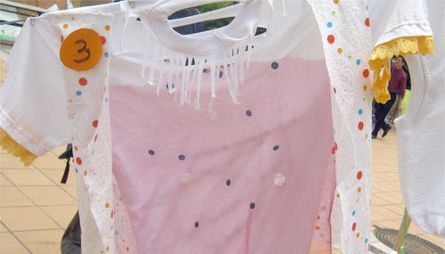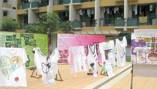 他们在干嘛?原来今天是中山大学信息科学与技术学院十周年院庆的日子,又恰逢学校正在开展“中大学子气质大讨论”活动,为了展示信科学院学生的风采风貌和艺术素养,同时给有设计爱好与特长的同学提供一个展示自己的平台,学院举行了“我有我型”T-shirt设计大赛。大赛自四月中旬起开始接受同学报名参赛及提交作品,原材料为组织者提供的纯白T-shirt一件,设计者可用任意方法及材料对T-shirt进行“改装”,如修改裁减,上色,绘制图案,订上珠片等。