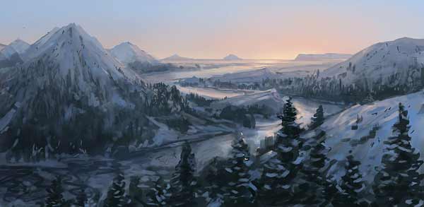 Dylan Cole,Matte Painting大师,参与了魔戒、夜魔侠等大师好莱坞巨片的MT工作。光看成品其实还远远不够,看看他的Sketch草图就知道了,一个MT高手的绘画基本功是多么的强,对于色彩与构成的掌握是多么的得心应手。