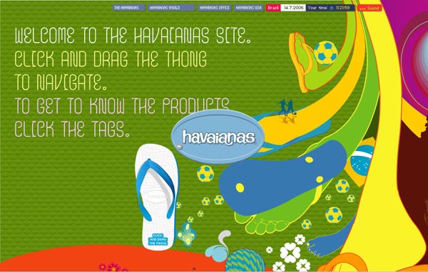 Havaianas是巴西一家专营拖鞋的公司,这是其产品的展示网站。