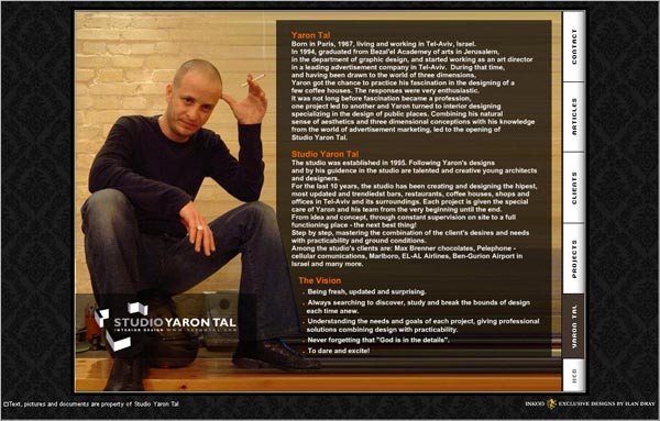 设计师Yaron Tal在巴黎出生,生活并工作在以色列的特拉维夫。这是他于1995年建立的工作室的网站。