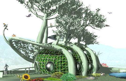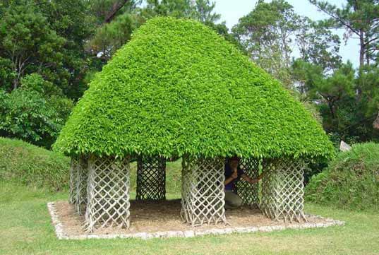 把绿色植物通过编制嫁接等传统的形式组织起来形成一种建筑.它华丽