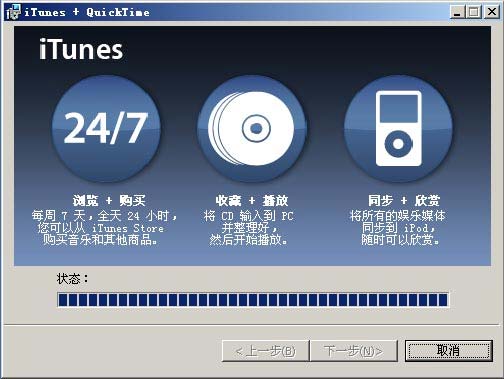 不知道是不是中文版的原因,由于疏漏,我想GUI制作师或者作安装程序的程序员搞错了横向图片的尺寸大概错位了一到两个像素。但是图片已经受到了本质的影响,iPod的图标已经变形严重了,可惜!