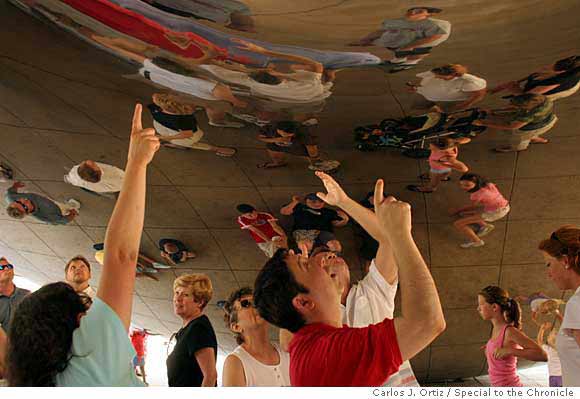 尽管卡普尔将他的作品命名为“云扉”(Cloud Gate),一般的人又称之为“豆”(bean)。它已经上了明信片、运动衫和旅游海报。