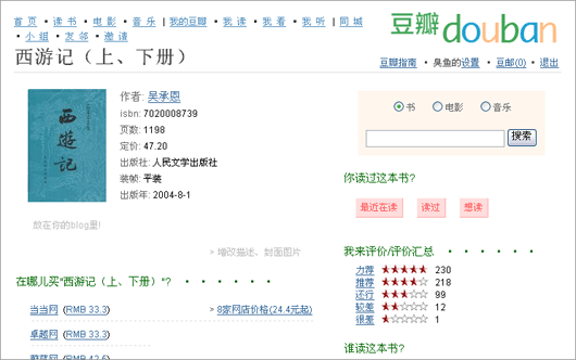 (http://www.douban.com/subject/1029553/ ) 需要显示的内容包括:“此书的基本信息、在哪儿买…、此书的简介、豆瓣成员给这本书添加的标签、喜欢这本书的人也喜欢、豆列推荐、此书的论坛、豆瓣成员的书评、搜索功能、你读过这本书?、我来评价/评价汇总、谁正在读这本书?、谁读过这本书、此书被哪些小组收藏”。共14类不同的内容。
