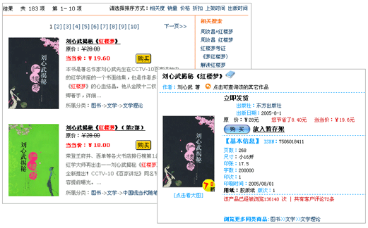 后面一张是当当网的搜索结果页,前面一张是某一本书的详细信息页。