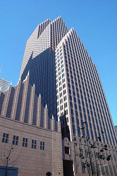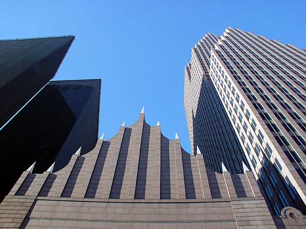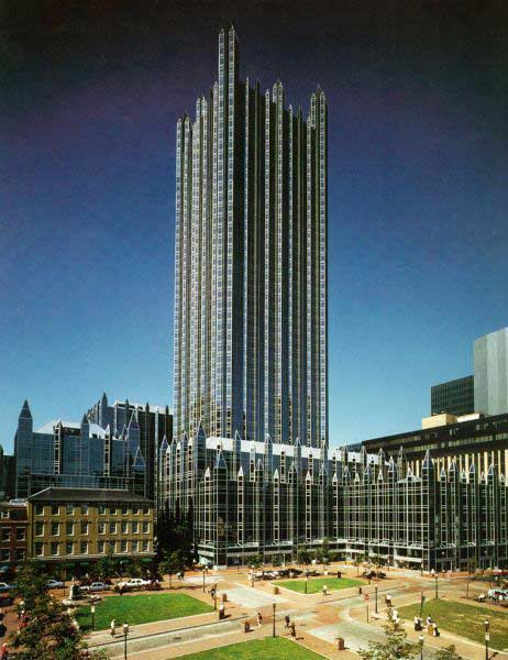 菲利普·约翰逊(Phillip Johnson)简介 美国建筑师,建筑理论家。1906年7月8日生于克里夫兰,曾在哈佛大学学习哲学,1927年毕业。后同建筑史家H·R·希契科克游历欧洲,结识了许多现代派建筑师。归国后于1932年任纽约市现代艺术博物馆建筑部主任,同年与希契科克合著《国际式风格》一书,并举办展览,首次向美国介绍欧洲现代主义建筑。1939年进哈佛大学建筑研究生院,从师M·布劳耶学习,但其真正的导师是密斯·范·德·罗。1943年获得建筑学位。1945年开设设计事务所,1946-1954年重任纽约市现代艺术博物馆建筑部主任。他的专著《密斯·范·德·罗》于1947年出版,颇负盛名。1949年设计了自己的住宅,确立了他作为建筑师的声望。 约翰逊早期的工作深受到密斯的影响,甚至他自己的家也在相当程度上有着密斯的影子。尽管他把密斯看作天才,但是他也在逐渐抱怨传统的风格,他表明:“我的宗旨是明确的、不同于传统”。1967年起,约翰逊与约翰·伯奇(John Burgee)一起工作至1991年,他们能够将简单的几何图形浇铸成一种新颖而且不可思议的模型。 由于约翰逊善于建造高楼和公共场所等大型建筑,因此他的作品遍及各个领域,他的设计经常具有很强的抽象性和审美观。约翰逊总是离奇地将一幢建筑到另一种建筑的风格完全改变,这也是他在工商界大受欢迎的缘故。约翰逊一直注重变幻建建筑物的外形,用他的话来说就是:“我们从来没必要照搬我们自己的东西,而是应该跟这些完全不同”。由于过多的关注建筑背景(比如环境和位置等),约翰逊的设计不时显得相当折中。约翰逊认为建筑中唯一最重要的错误就是无聊。 在约翰逊与搭档伯奇合作的设计中,越来越注意通过建造地平线的同一性以满足客户的需要,客户们往往希望他们的建筑在这个共同的世界中显得更别致、醒目一些。因此,他设计的建筑既与四周的高楼形成明显的对比,又占了相当的优势地位。他认为建筑的结构和外观必须与客户的认可程度相当。 约翰逊相当注意自然和人造光线之间的搭配,同时也意识到水对所处位置的重大作用以及光线等方面的作用。因此,在设计中,他加入了几个单独的却又有一定关联的喷泉。他还用雕刻结等方式创造更大的空间,他说道:“一方面,我对排列的建筑空间相当感兴趣,并将它当作一种思路来进行思考,将之付诸实际中以领会、理解”。尽管约翰逊还是一直追随着密斯的步伐,但后来经过自己的努力,成为摩天大楼的主要设计师。1979年,约翰逊获得了第一届普立兹克建筑奖(Pritzker Prize),该奖被誉为建筑界的诺贝尔奖 。