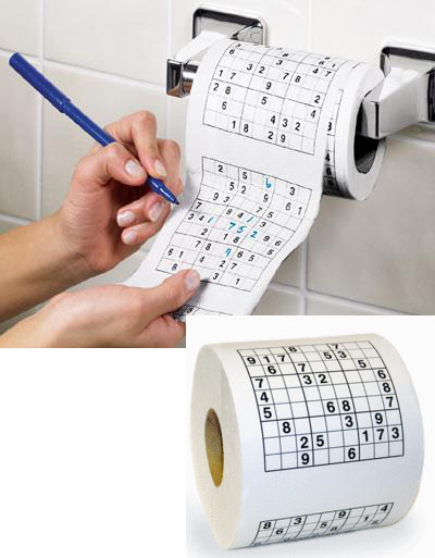 上厕所时忘记带报纸,还能做些什么呢? 数独游戏正在全世界流行,有了Sudoku 手纸现在连卫生间里也可以动动脑筋了,厕纸也想到了,牛