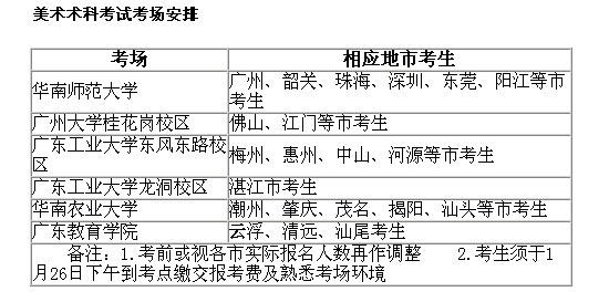 据了解,报考广东省高等艺术院校或专业的考生,艺术专业术科考试实行全省统一考试大纲、统一命题、统一评分标准,定点考试,定点评卷,专业成绩在全省通用。
