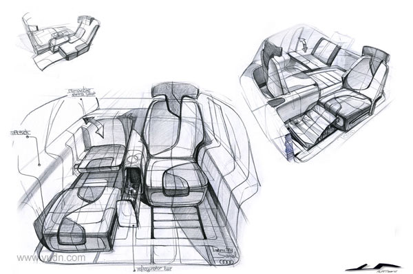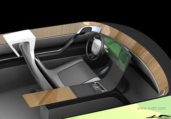 意大利米兰SPD设计学院交通工具设计专业硕士研究生Dzmitry Samal毕业设计作品——奥迪Avantgarde,这款时尚的豪华轿车被一个车舱分为了截然不同的两个部分。