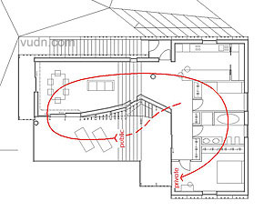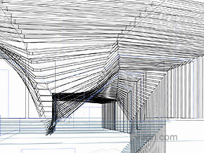 这个建筑最初是附着于主体建筑的一个屋顶部分,后来演变为一种组织和形态独特的建筑形式。结构架得主要材料是木头和钢铁,重新塑造了一种与周围石灰岩山体很协调的坡度。