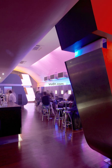 酒吧中使用LED灯来照明,减少灯光发出的热量,这样就可以减少空调的使用,并且使用穹顶造型来减少冷空气的流失,从而降低耗能。