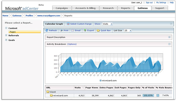 Gatineau和Google Analytics功能相当类似,和Google Analytics一样,Gantineau整合了微软自家的adCenter ,但Gantineau有一些非常“特殊的”数据,如:访客性别、年龄等一些其他服务所没有的数据。