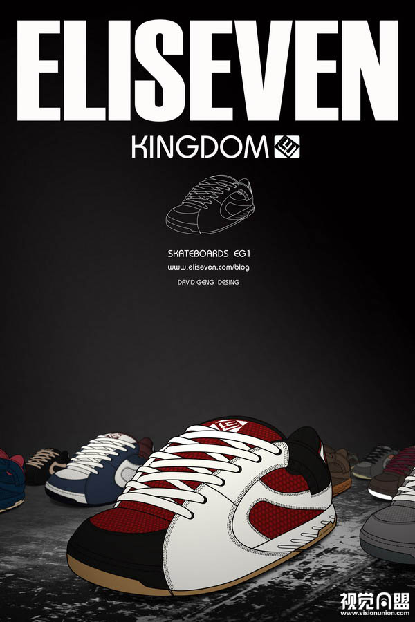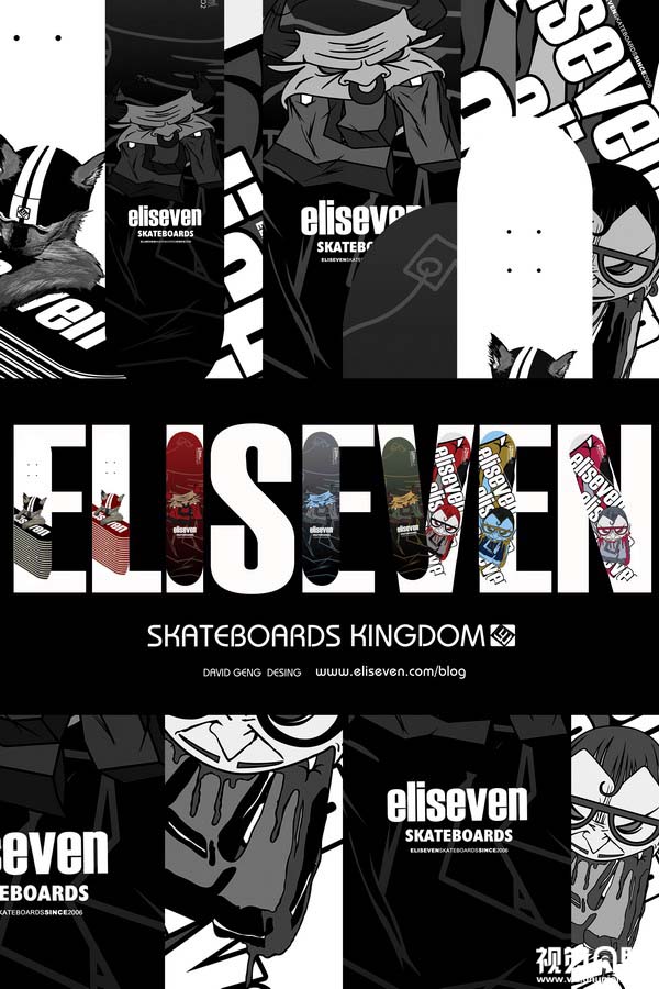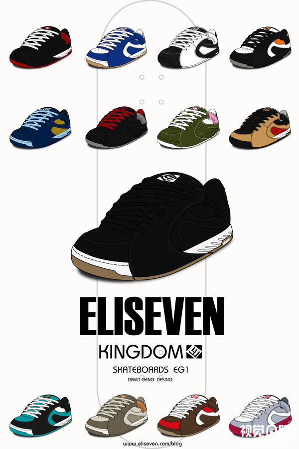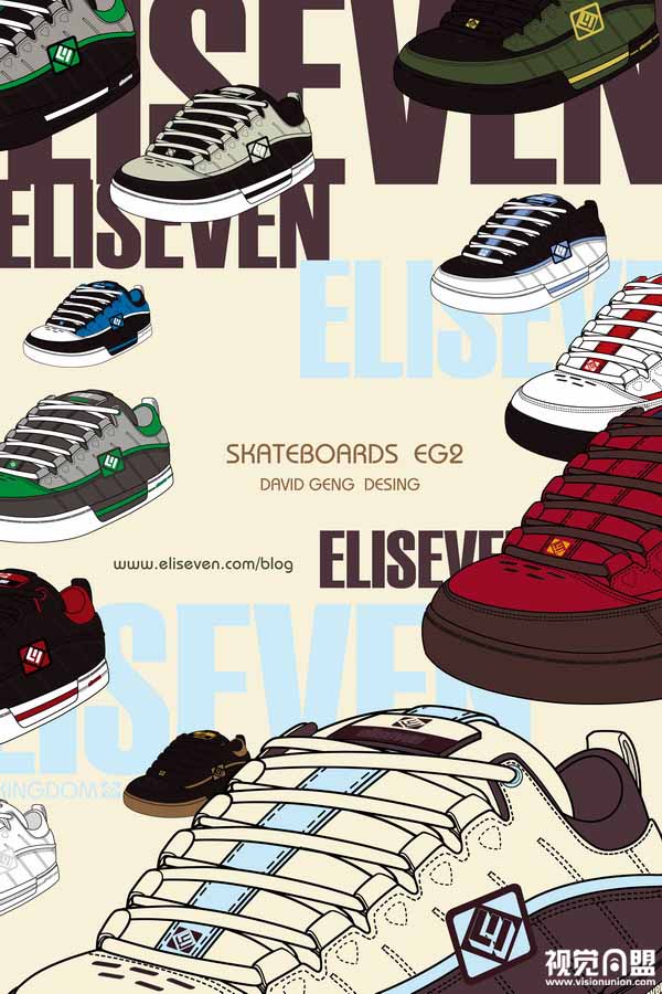 Works Information 作品信息 Works Name 作品名称: ELISEVEN品牌设计 Works Information作品简介: ELISEVEN滑板的图形,滑板鞋的造型与配色以及海报的综合设计体现!