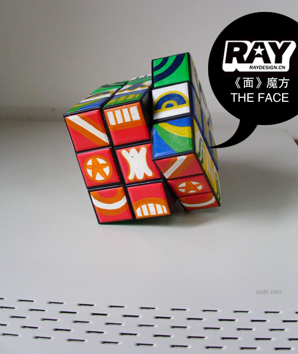 为了更好的对面的主题进行表达,RAYDESIGN在动画完成的同时推出了周边的魔方玩具。魔方玩具主要按照动画中主角最后变脸的主题设计,魔方的六个面有不同的颜色,代表不同的表情,可以通过魔方的转动来创造你所喜欢的表情,但是如同动画《面 THE FACE》中一样,你若不是魔方高手,最后可能无法找回一张完整的脸。