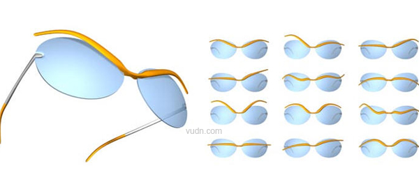 眼镜设计,它上面有两道眉毛样的装饰,可以根据心情、天气调解出不同的表情