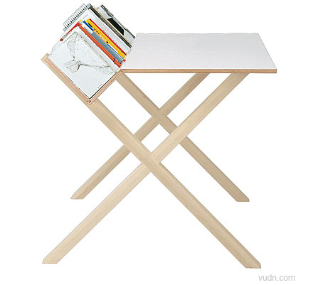 桌子设计,有V形的腿,可以折叠起来,方便携带