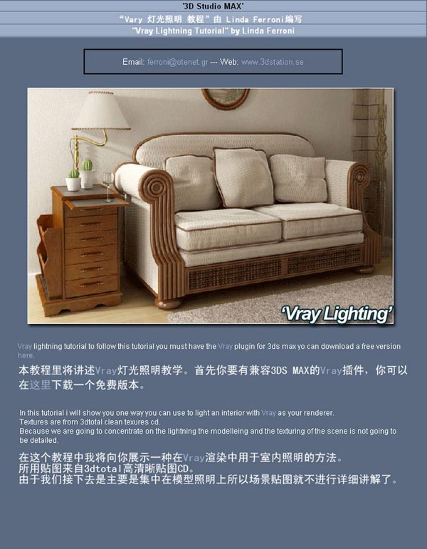 一个希腊人的VR教学,内容写的有些笼统,但思路挺不错的。不过这个教程好像写的比较早了,用的Vray版本还是 v1.09.03r,但依然希望对大家有所价值。
