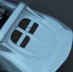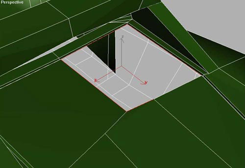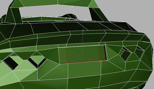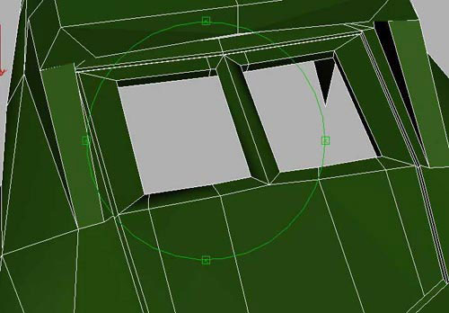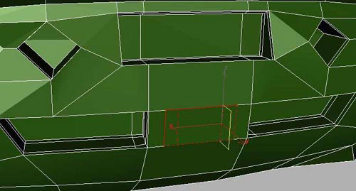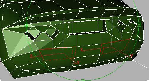 在随下的几个图片中,你可以看到我是如何制作后面的折线凹槽的.(使用SLICE,EXTRUDE.)你应该注意一下,我使用SLICE工具反复切出的这些面.我总喜欢先删除一些面,然后又用不同的方法又将这些面缝合起来.当作完一个步鄹以后,我总喜欢使用MESHSMOOTH来观察一下效果.