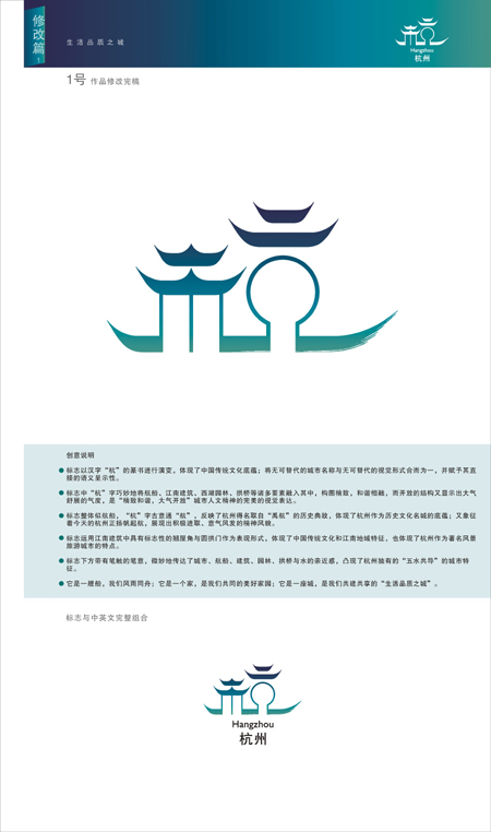 据了解,“杭州城市标志设计”第一轮市民投票活动结束后,在综合市民投票和专家评议的基础上,产生了3件城标设计作品。著名艺术家韩美林牵头的专家修改组对3件作品进行了修改,经杭州城标专家评审委员会评审,产生了2件城标候选作品。4日起开始的第二轮市民投票就是对这2件城标候选作品进行最后表决。