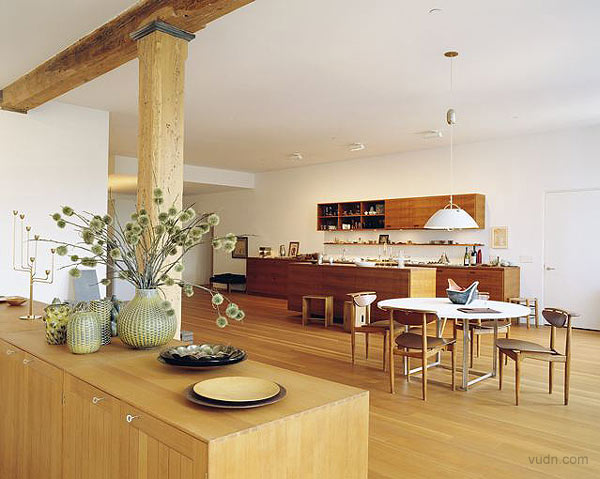 位于纽约的Lafayette Street上,2500平方尺的空间,大量利用自然的材料,大棵的枫叶树木柱与梁以及冷杉材料的地板,木质的家具,营造温暖简洁的氛围。