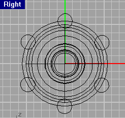 配合键盘的Shift键选择六个小圆。使用 (Surface > Extrude > Straight)在 Top 视图拖动鼠标挤压成面,要保证它的略长于把手的凹槽部分(见下图)。