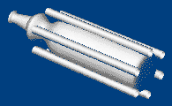 现在就可以通过布尔运算的方法制作出把手的凹槽。在进行布尔运算前建议你先要存盘。取消所有选择,按 (Solid > Difference)按钮,首先选择把手模型后按鼠标右键,再依次点击选择六个小圆筒,按鼠标右键结束,稍等片刻凹槽就形成了。