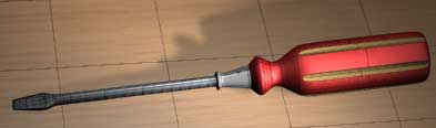 这时螺丝刀的头部形状就制作出来了。注意此时的头部(端面)并没有封闭(可以通过渲染来观察)。选择头部模型,用菜单Solid > Cap Planar Holes将它的两端封闭。. 至此,整个模型就全部制作完成了。Rhino 自带一个渲染器,相对来说它的材质、灯光设定等方面要差一些(2.0版本有了一定的提高)。最好的方法是使用 Save as 将它导出到 3D MAX 等其他软件中对模型进行材质的编辑和渲染。也可以在 Rhino 中选择某物体后使用 为它设定简单的材质属性,使用 这组按钮可以在场景添加灯光。下面的图像就是在 Rhino 中渲染完成的。图像中看到的结构线条是在渲染参数中勾选了 Render wireframe 的结果。